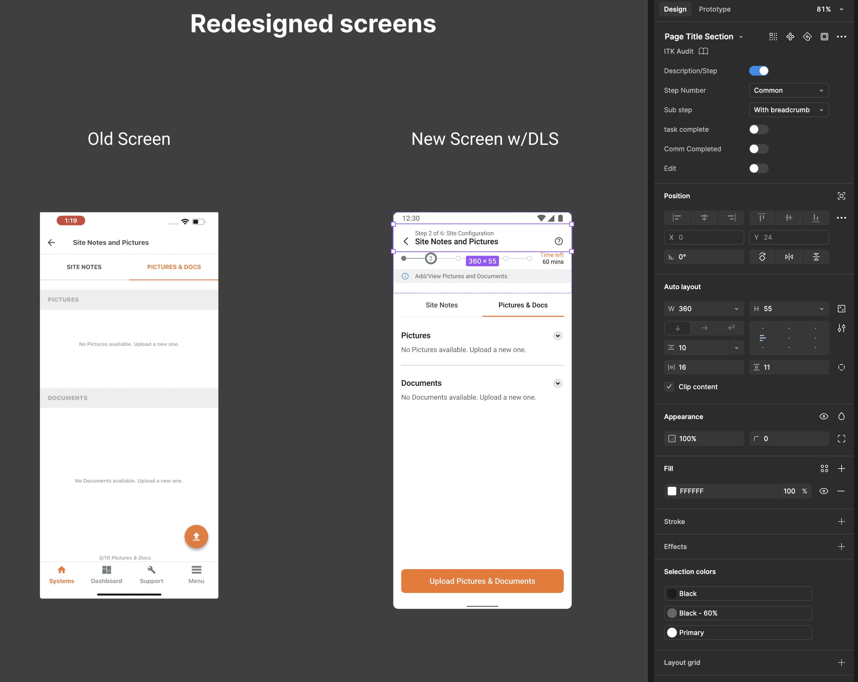 The UX revamp began with auditing existing pain points via user interviews and workflow analysis. A modular design library was built in Figma, prioritising atomic components and task-specific templates (site mapping, system configuration). Complex workflows, like panel layout adjustments, were restructured into linear, context-aware steps. Weekly developer syncs ensured the code library mirrored the design system’s structure. Iterative testing with installers validated clarity, while before/after screens highlighted reduced visual clutter and intuitive interactions.